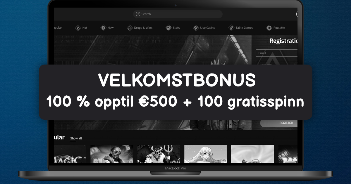 • Pluss: Velkomstpakke på opptil 7 000 kr + 225 gratisspinn over tre innskudd, ukentlige kampanjer, VIP-program.